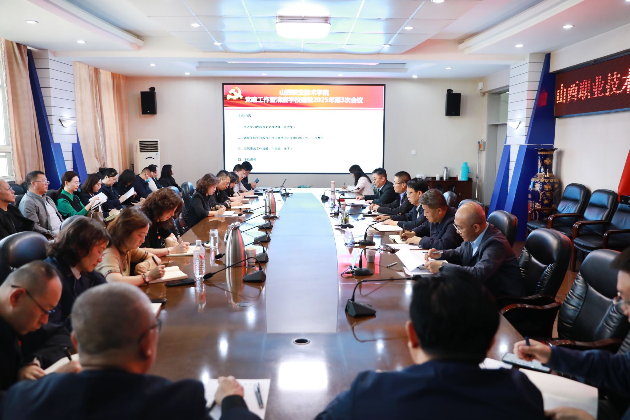 4月25日下午,学院2025年度第三次党建工作暨清廉学校建设例会在坞城校区主楼四层会议室召开。学院党委书记赵随民、党委副书记尤陶江、纪委书记牛惠斌出席会议。党政办公室、纪委办公室、组织人事部、宣传统战部等部门相关人员,各校区党工委、各党总支负责同志以及学习教育工作专班成员参加会议。会议由学院党委副书记尤陶江主持。