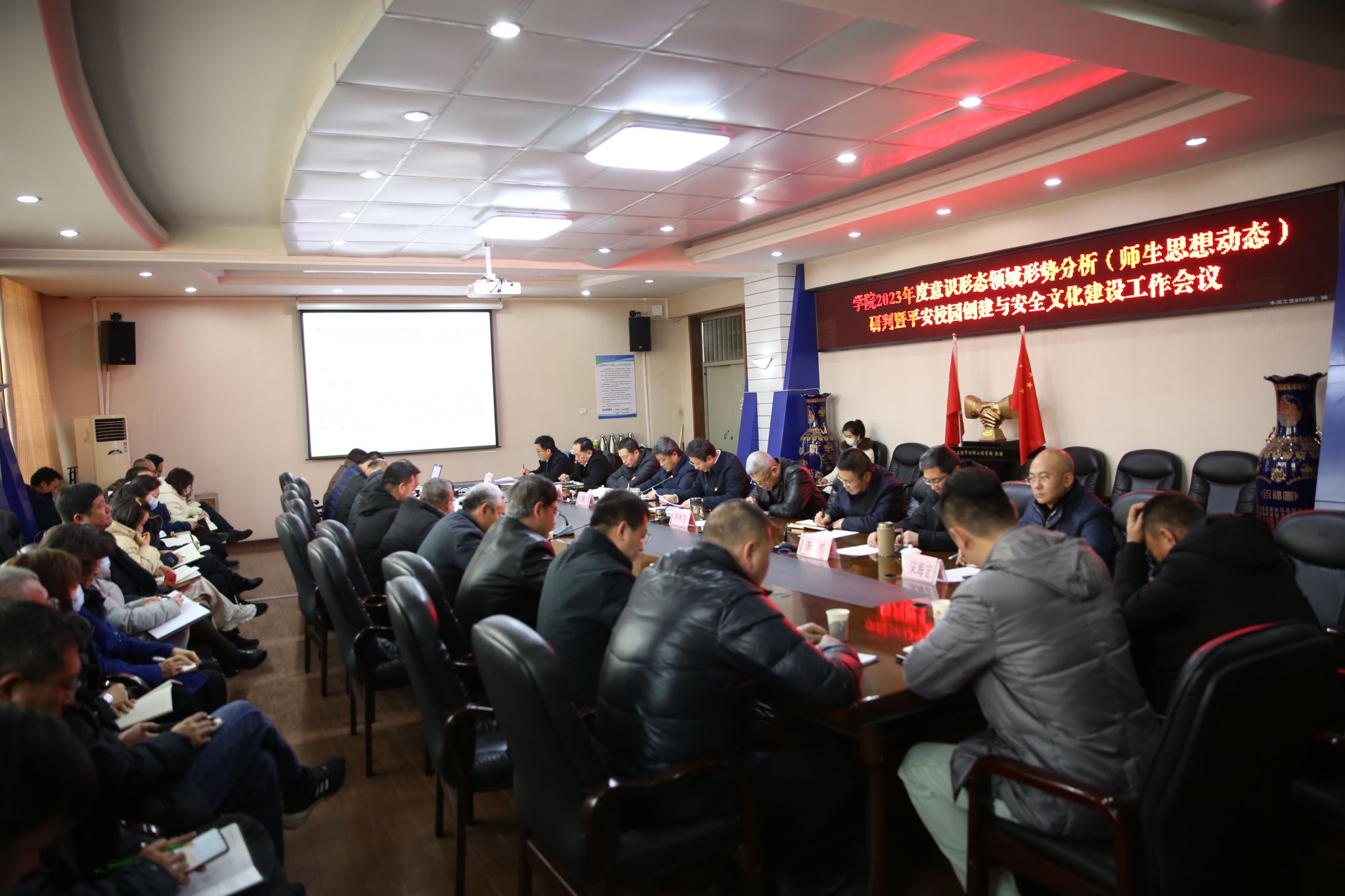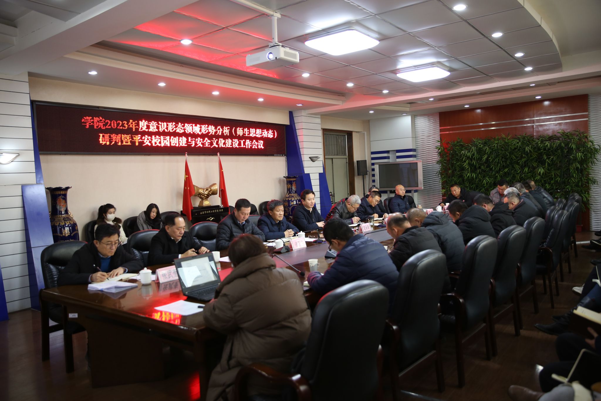 根据省委、省委教育工委的相关要求,按照学院的工作部署,12月27日下午,开云官网在坞城校区召开2023年度意识形态领域形势分析(师生思想动态)研判暨平安校园创建与安全文化建设工作会议会。学院党委委员、各党工委书记、各党总支书记;党政办公室、纪委办公室、组织人事部、宣传统战部、人才办、教务(科技)部、学工部、保卫部、后勤服务中心、图文信息中心、工会、团委等负责人参加了会议。会议由学院党委书记雷承锋主持。