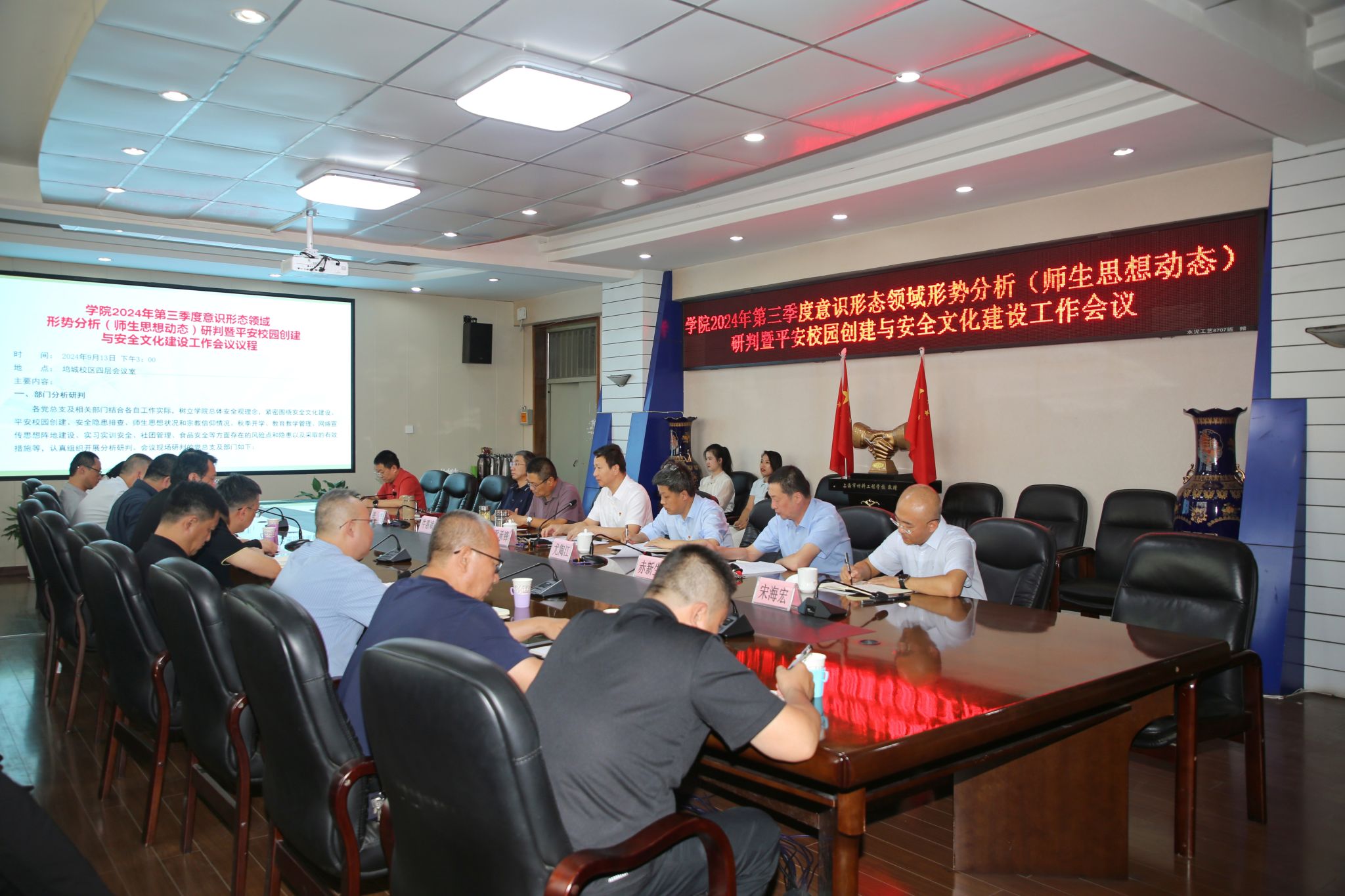 根据省委、省委教育工委的相关要求,按照学院的工作部署,9月13日下午,开云官网在坞城校区主楼四层会议室召开2024年第三季度意识形态领域形势分析(师生思想动态)研判暨平安校园创建与安全文化建设工作会议。党委委员、各党工委书记、各党总支书记、党政办公室、纪委办公室、组织人事部、宣传统战部、人才办、教务(科技)部、学生工作部、质量控制中心、保卫部、后勤处、图文信息中心、工会等负责人参加了会议。学院党委书记雷承锋主持会议并做讲话,党委副书记尤陶江、党委委员、副院长赤新生、党委委员、纪委书记牛惠斌出席会议。