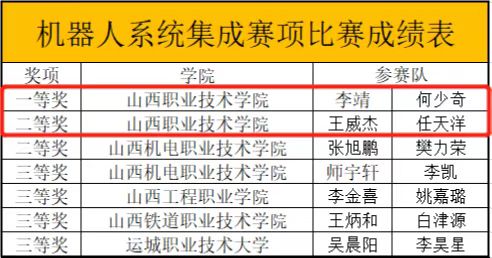 奋斗正青春,技能创未来。3月3日-3月4日,由机电工程系承办的“山西省第十六届职业院校技能大赛”高职组“机器人系统集成”和“数控机床装调与技术改造”赛项在榆次校区圆满落下帷幕。我系参赛代表队获得了“机器人系统集成”赛项一等奖1名,二等奖1名、“数控机床装调与技术改造”一等奖1名,二等奖1名,三等奖1名的好成绩。
