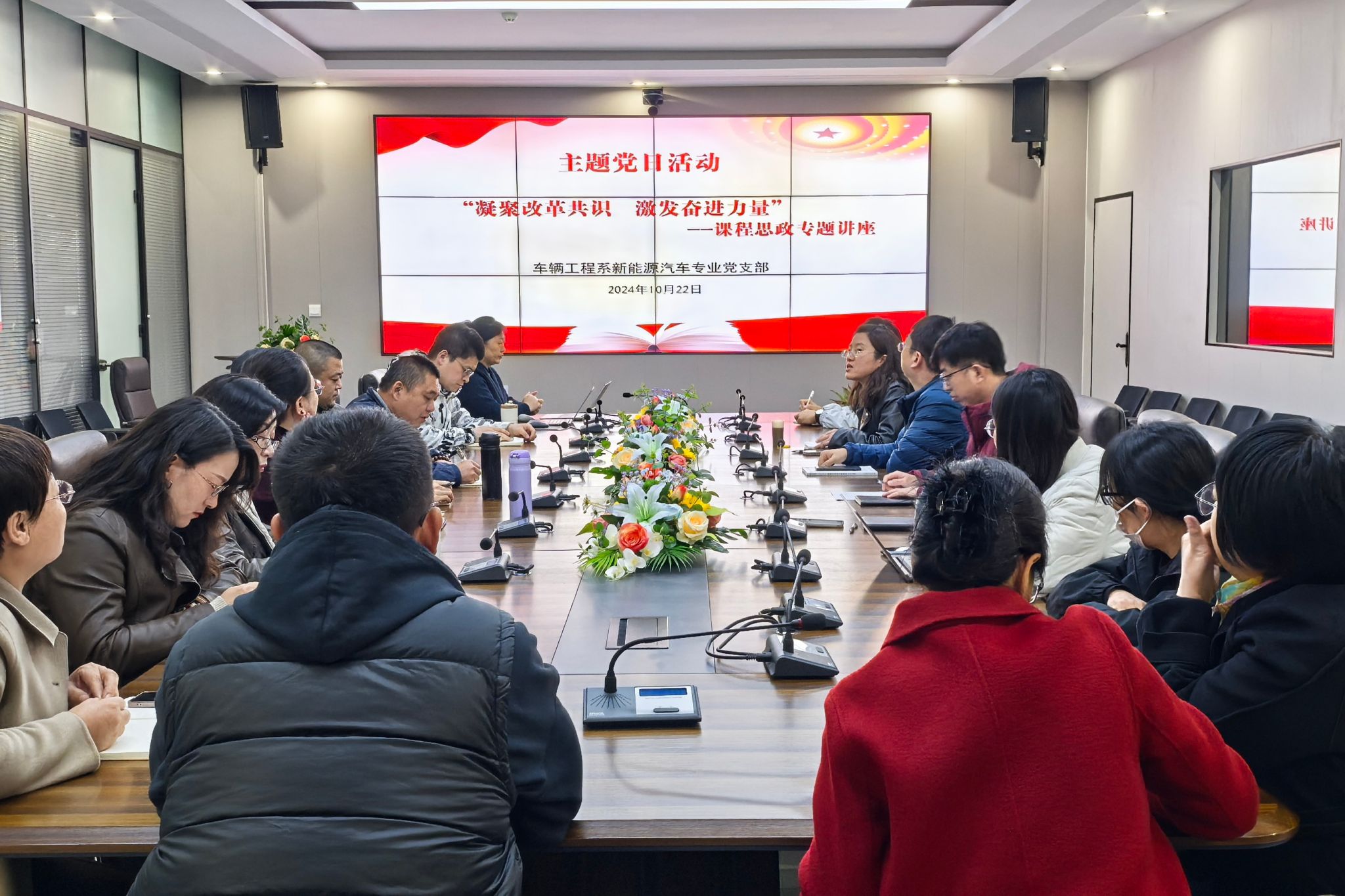 为深入学习贯彻党的二十届三中全会精神,把课程思政工作更好地落实落细、见行见效,车辆工程系组织全体党员、教职工于10月22日开展了以“凝聚改革共识 激发奋进力量”为主题的课程思政专题讲座主题党日活动。本次活动邀请开云官网思想政治理论教学研究部党总支书记蒋晋红老师为我系全体教职工做了题为“以钉钉子精神学习贯彻党的二十届三中全会精神”的专题讲座。