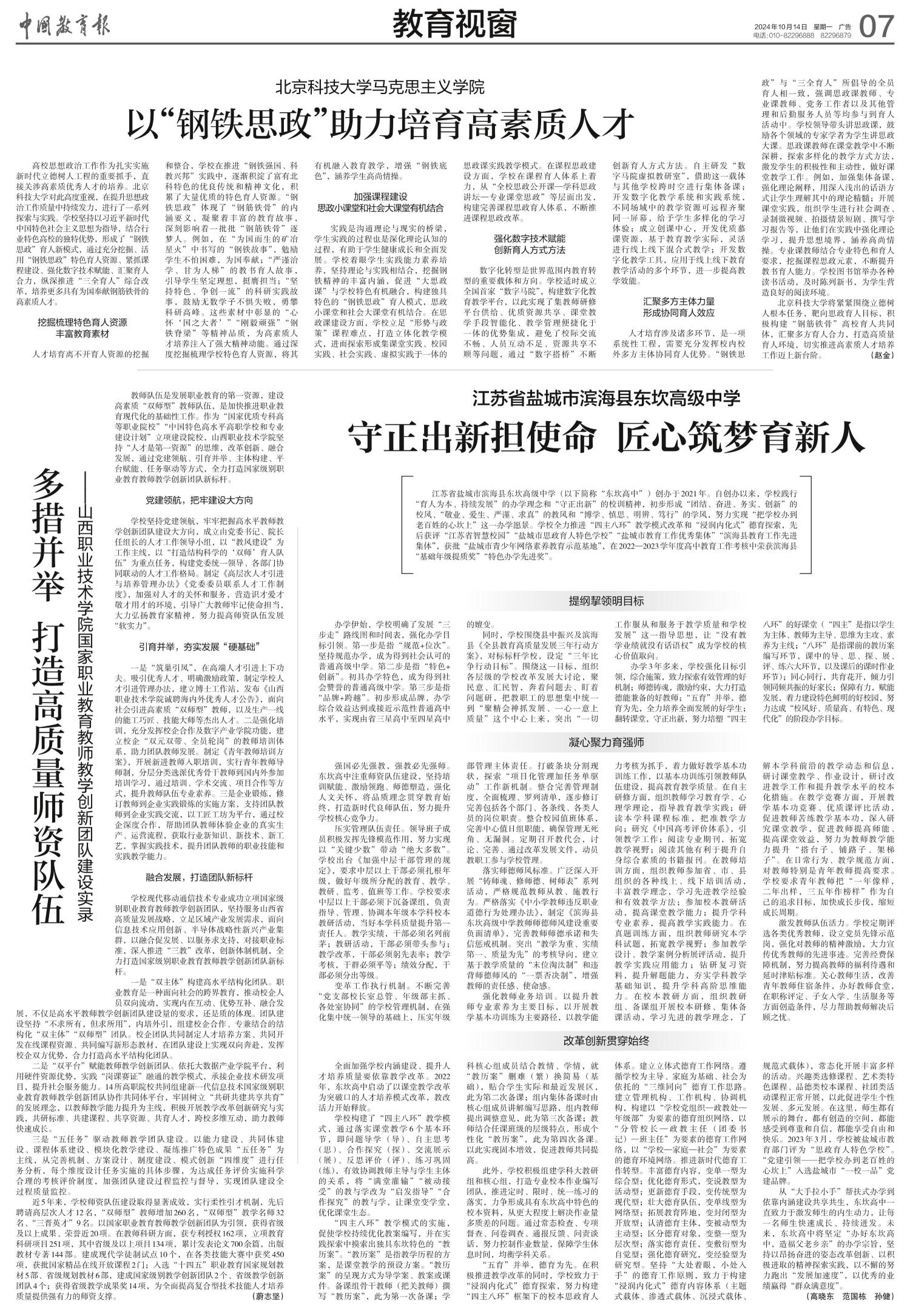 近5年来,学校师资队伍建设取得显著成效,实行柔性引才机制,先后聘请高层次人才12名,“双师型”教师增加260名,“双师型”教学名师32名、“三晋英才”9名。以国家职业教育教师教学创新团队为引领,获得省级及以上成果、荣誉近20项。在教师科研方面,获专利授权162项,立项教育科研项目251项,其中省级及以上项目134项,累计发表论文700余篇,出版教材专著144部。建成现代学徒制试点10个,在各类技能大赛中获奖450项,获批国家精品在线开放课程2门;入选“十四五”职业教育国家规划教材5部、省级规划教材6部,建成国家级别教学创新团队2个、省级教学创新团队4个;获得省级教学成果奖14项,为全面提高复合型技术技能人才培养质量提供强有力的师资支撑。(蔚志坚)