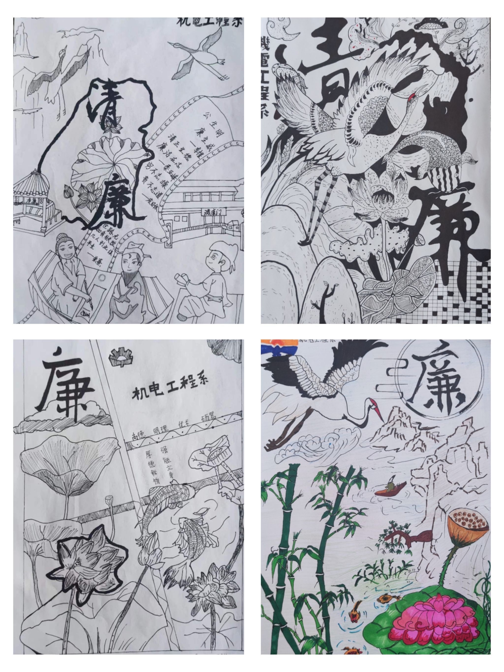 通过采取线下清廉绘画征集,以手抄报、黑白装饰画的形式,让学生们更好地了解清廉学校建设工作。题材内容选择传统文化结合系部文化为主,逐步培养学生正确、积极、健康的理想信念、道德观念、法治意识和社会责任感。根据学生的身心特点,将正确的道德观念深入人心。