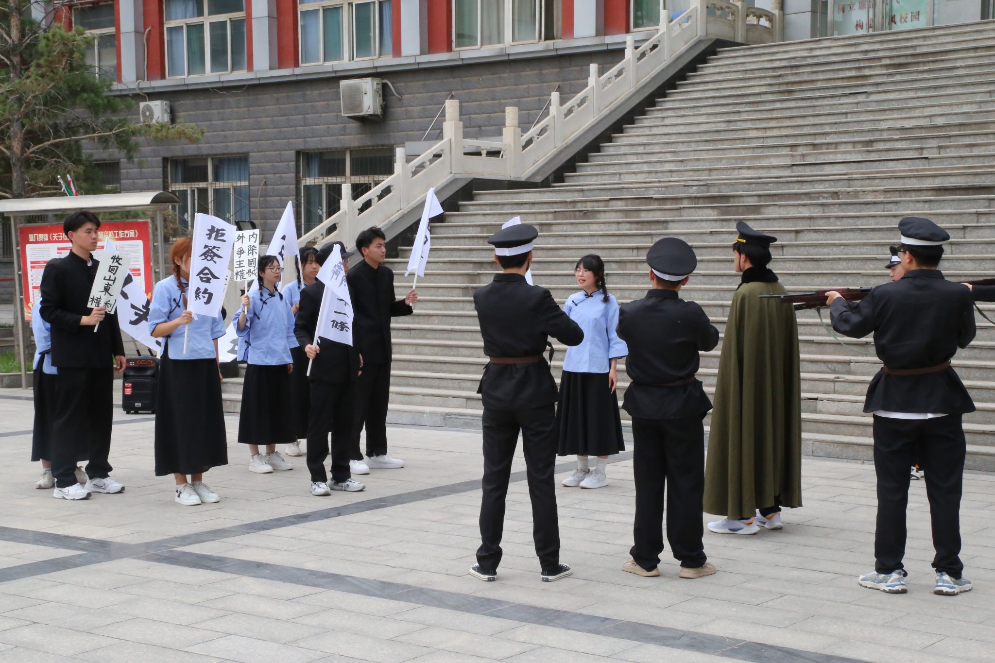 参观结束后,我系学生展演了名为《破晓》的课本剧,采取别出心裁的穿越朗诵,从革命精神中汲取奋进力量,激励同学们怀抱一颗更加热忱的心,做一个忠诚、廉洁、担当的时代新人。用习近平新时代中国特色社会主义思想凝心聚魂,将主题教育的学习成果转化为干事创业的动力,为系部高质量发展筑牢信仰之基,补足精神之钙。