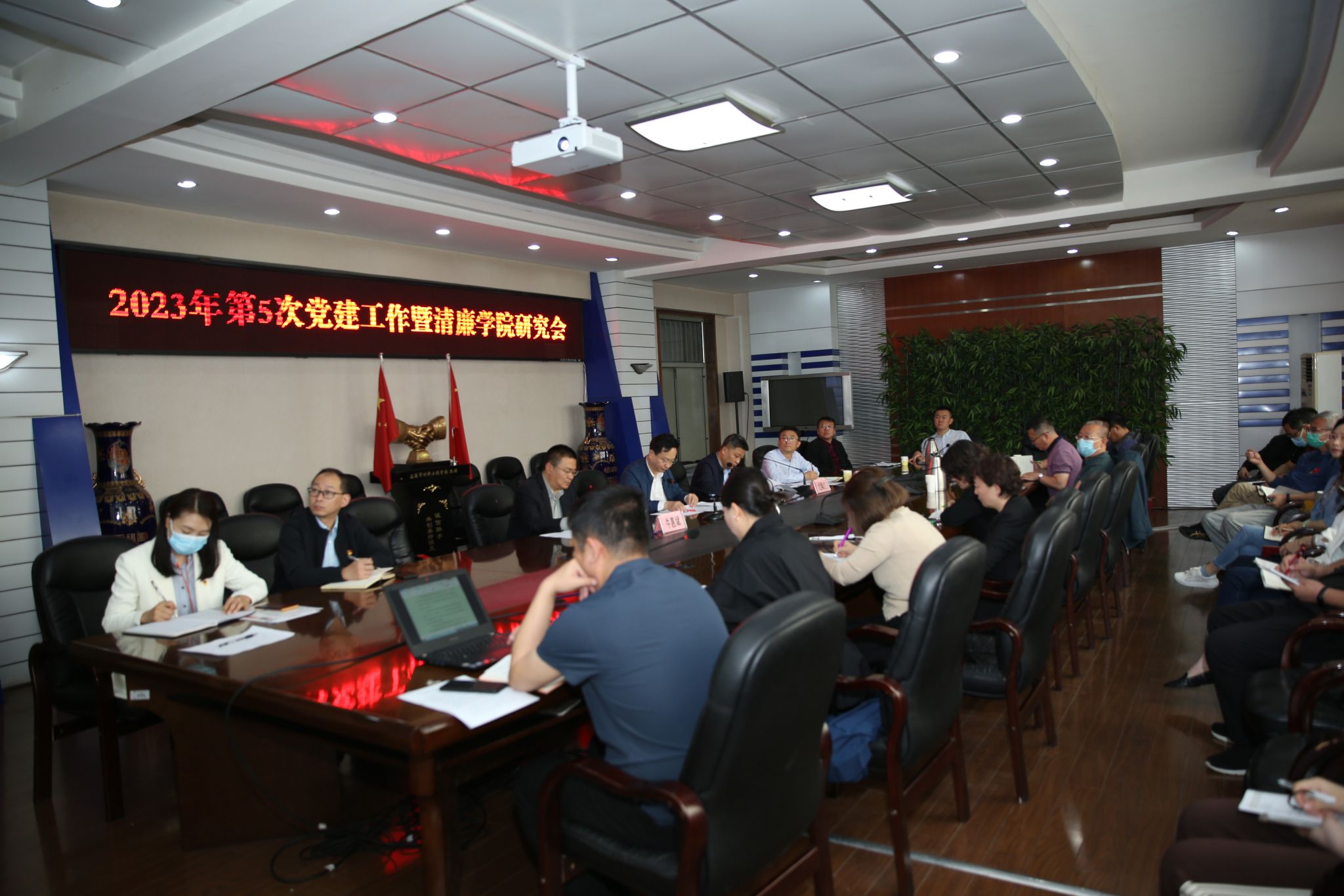 5月31日上午,2023年第五次党建工作暨清廉学校会议在坞城校区主楼四层会议室举行。学院办公室、组织人事部、宣传统战部负责人,校区党委工委书记、各党总支负责人参加了会议。学院党委书记雷承锋、党委副书记尤陶江、纪委书记牛惠斌出席了会议。会议由学院党委副书记尤陶江主持。