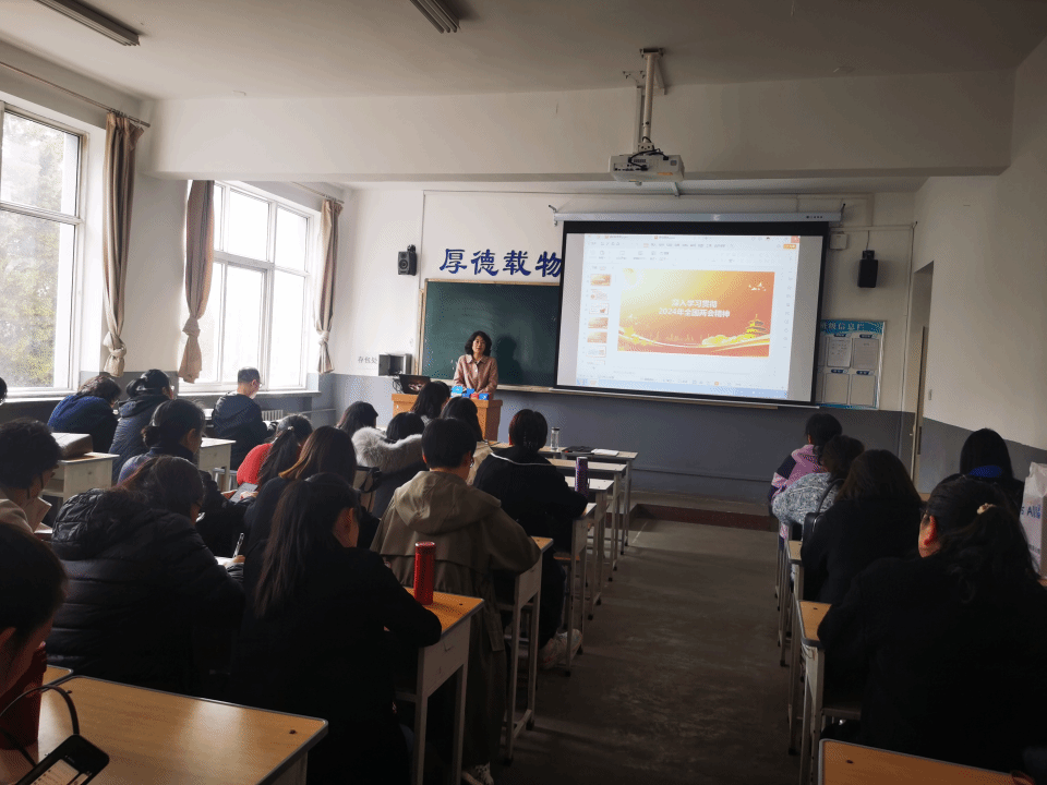 会上,基础教学部党总支书记于艳华首先强调了政治理论学习重要性及相关规定和要求,接着带领全体教师有重点地学习了2024年两会精神;并向大家介绍了学院三步走战略和近期主要工作。最后要求全体教师提振精神,鼓足干劲,持续学习,努力提升业务能力和水平,认真规范地上好每一节课,落实好意识形态和课程思政工作要求,做既教书又育人的“四有好老师”!