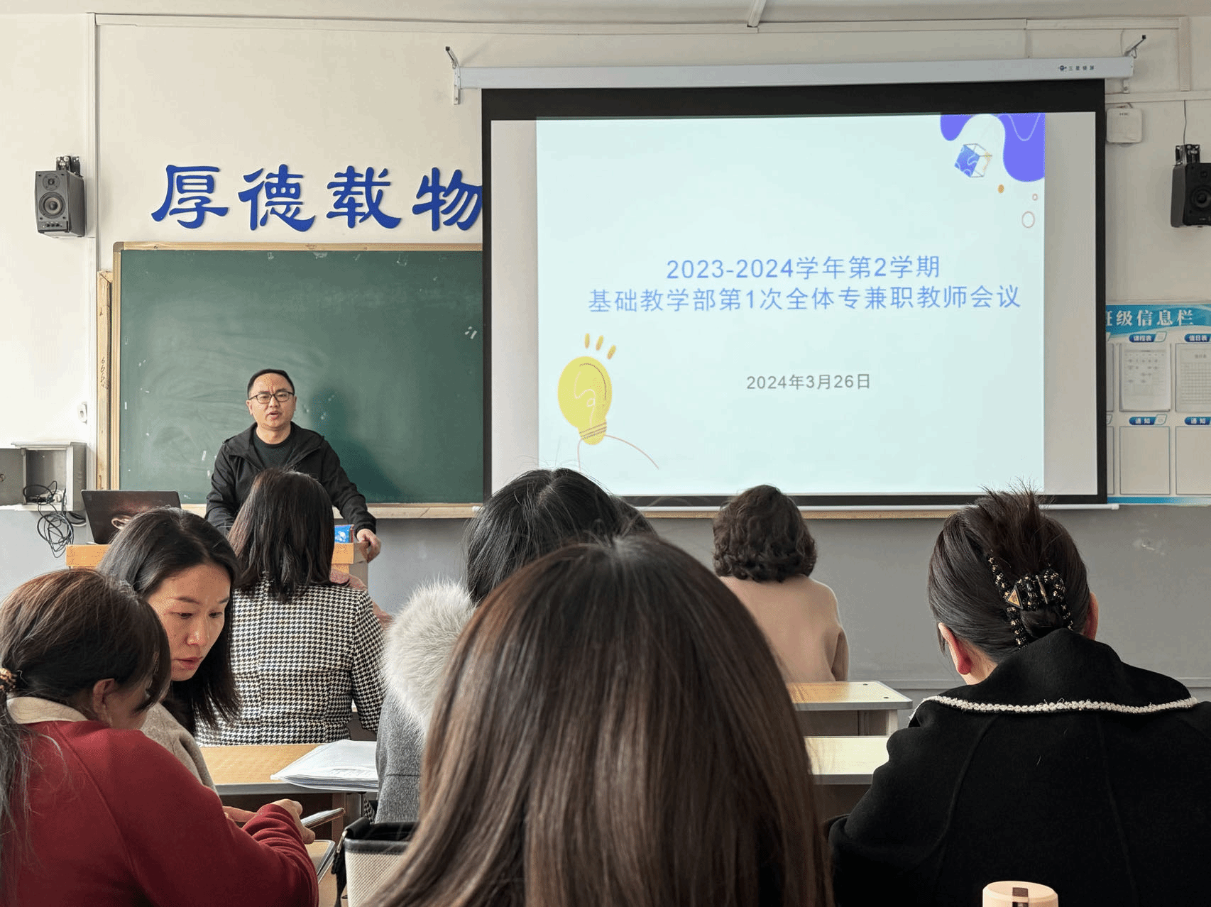 为统一思想、凝聚共识、明确目标、落实责任,确保新学期各项工作平稳、有序、高效开展,3月26日下午基础教学部召开了新学期全体教师大会。基础教学部全体专兼职教师参加了会议,会议由基础教学部副主任刘利斌主持。