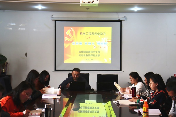 按照上级党委的安排,我系机械制造教师党支部、机电设备教师党支部3月30日下午两点钟在教学楼三层会议室集体进行了第二次专题党史学习。根据楼阳生书记党史学习教育动员讲话精神和学院党史学习动员大会精神,紧紧围绕习近平《论中国共产党历史》和《毛泽东邓小平江泽民胡锦涛关于中国共产党历史论述摘编》,坚持读原著、学原文、悟原理,按逐篇学习的原则,开展专题学习。党员同志们通过此次专题学习,从中汲取奋进力量。在我们今后的工作中,保持昂扬斗志,积极向上,奋发图强,促进“特色鲜明、全国一流”高水平高职院校建设,乘势而上书写山西职院践行新时代中国特色社会主义新篇章而不懈奋斗。