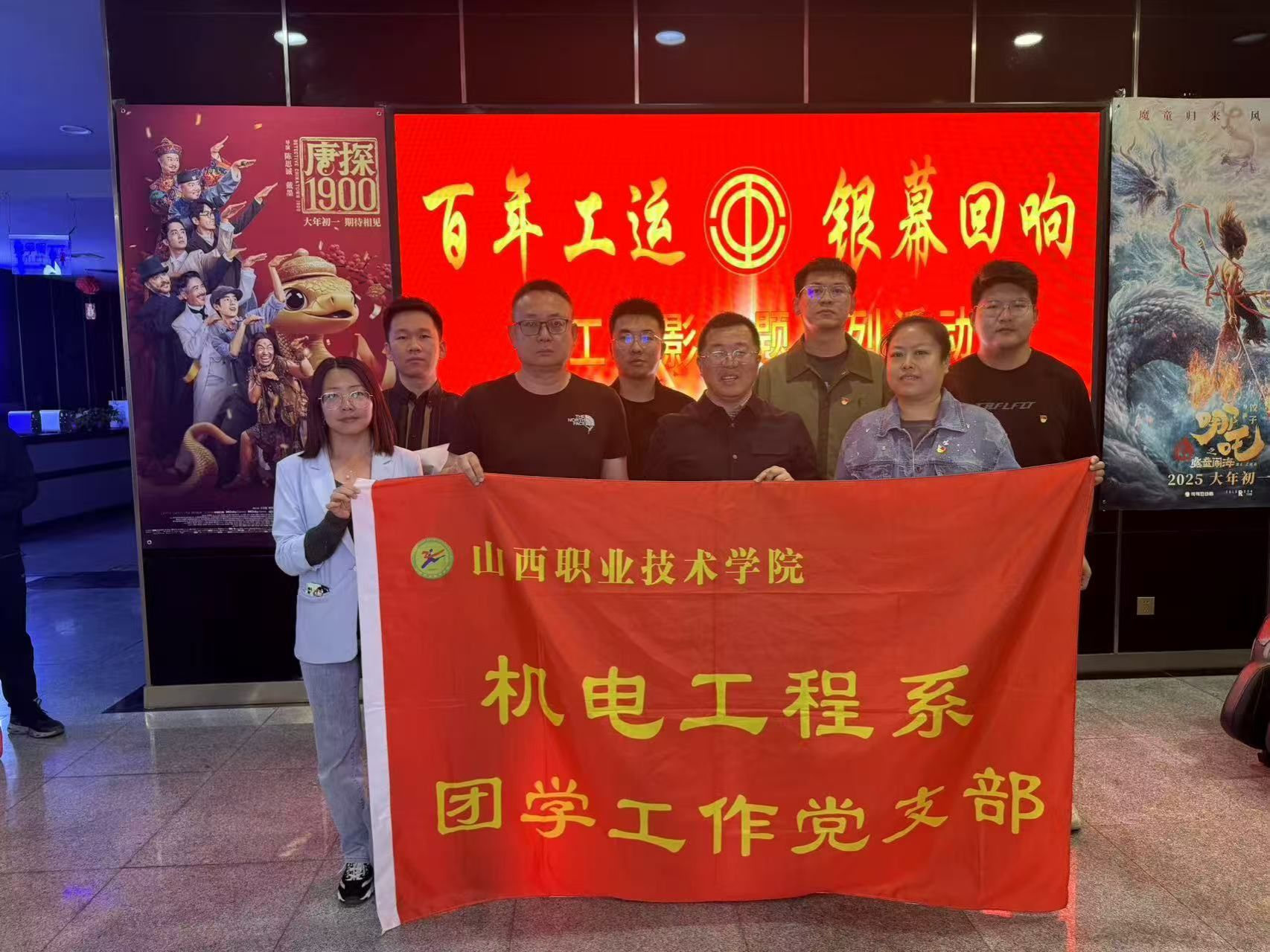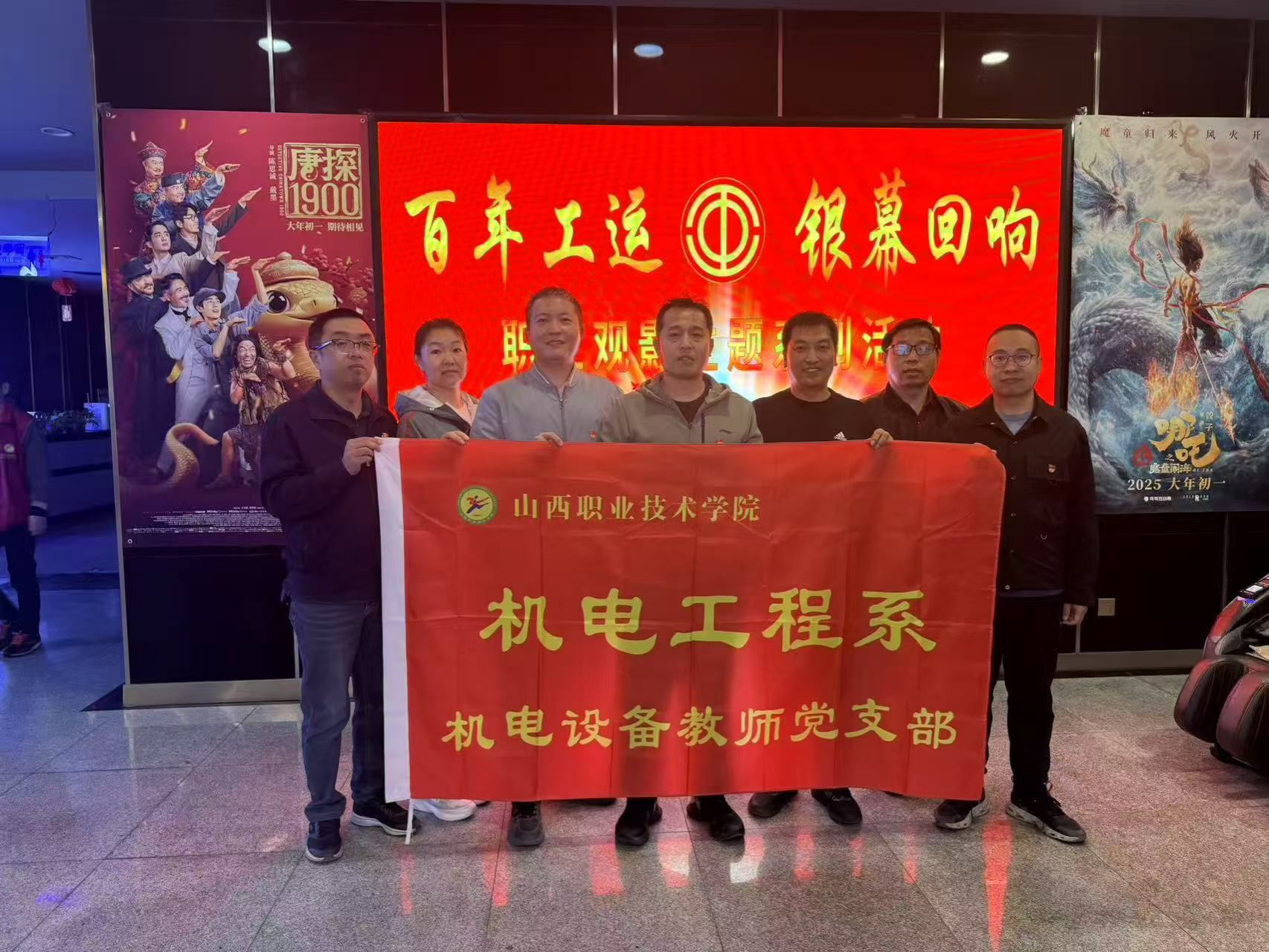 为深入学习贯彻习近平新时代中国特色社会主义思想,厚植师生爱国主义情怀,坚定文化自信,4月15日机电工程系党总支组织师生党员依托晋中市总工会“百年工会,银幕回响”活动主题开展主题党日活动,通过沉浸式学习百年工运史、感悟红色光影艺术,引导师生从工人阶级的奋斗历程中汲取精神力量,以爱国主义为魂、文化自信为基,凝聚服务新时代发展的使命担当。