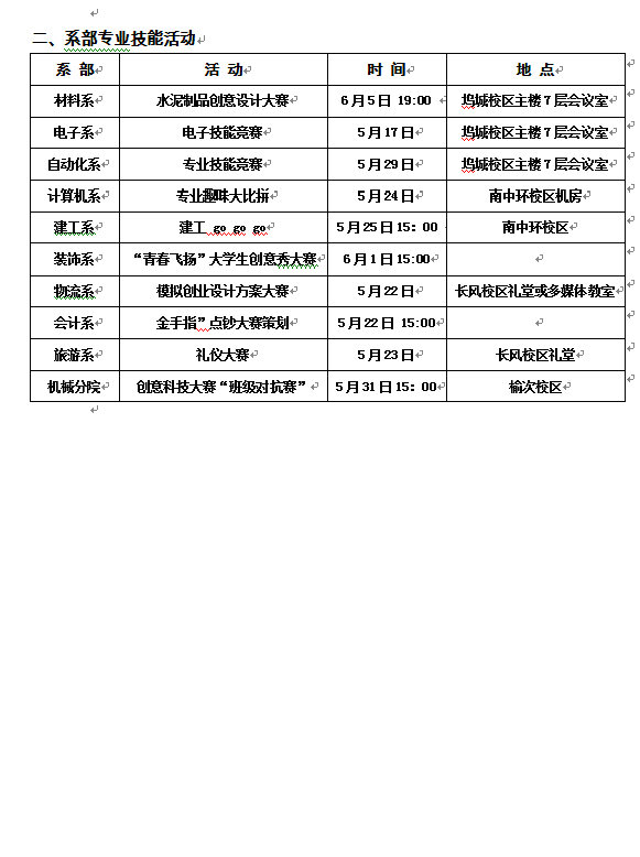 系部:设团体总分第一名、第二名、第三名;专业技能活动特色奖5名;组织奖若干。