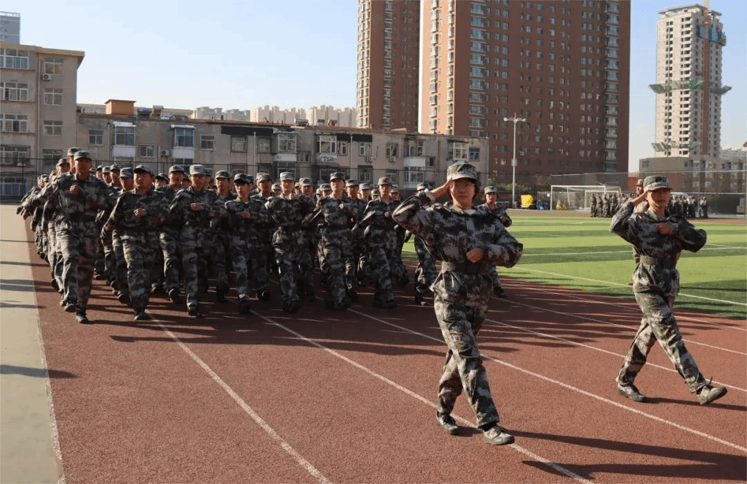 在教官的指导下排列整齐,认真完成动作,展示出同学们的蓬勃朝气,一声声强穿透力的“哈”,一次次重复的练习,即使寒风也动摇不了他们顽强的意志。