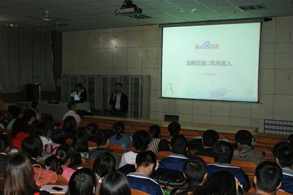 山西龙采科技有限公司是百度山西地区总代理,是一家专门为企事业单位信息化建设、使用和推广进行系列化服务的公司,也是我系校企合作单位之一。9月26日下午4:30分在南中环校区四楼阶梯教室举办了“龙腾百里 风采度人”专题讲座。本次讲座特邀山西龙采科技有限公司的姚响副总经理担任主讲嘉宾。我系计算机信息管理专业、动漫专业以及计算机应用专业的全体学生参加本次讲座学习。
