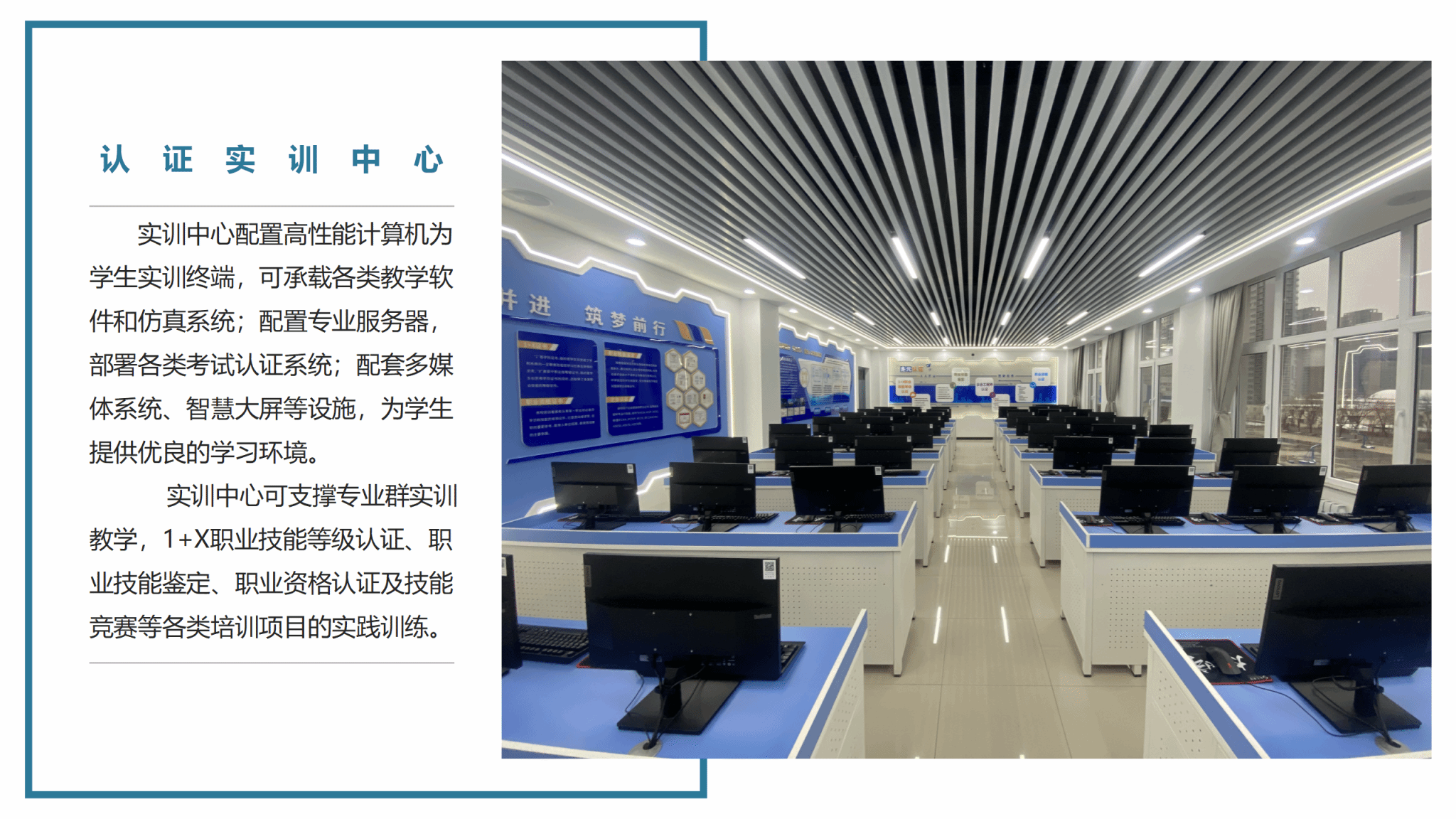 计算机工程系实训基地是依据学院发展战略规划、专业建设规划及校内实训基地建设规划,已建成集实践教学、社会培训、技能鉴定、企业真实生产和社会技术服务为一体的高水平职业教育实训基地。