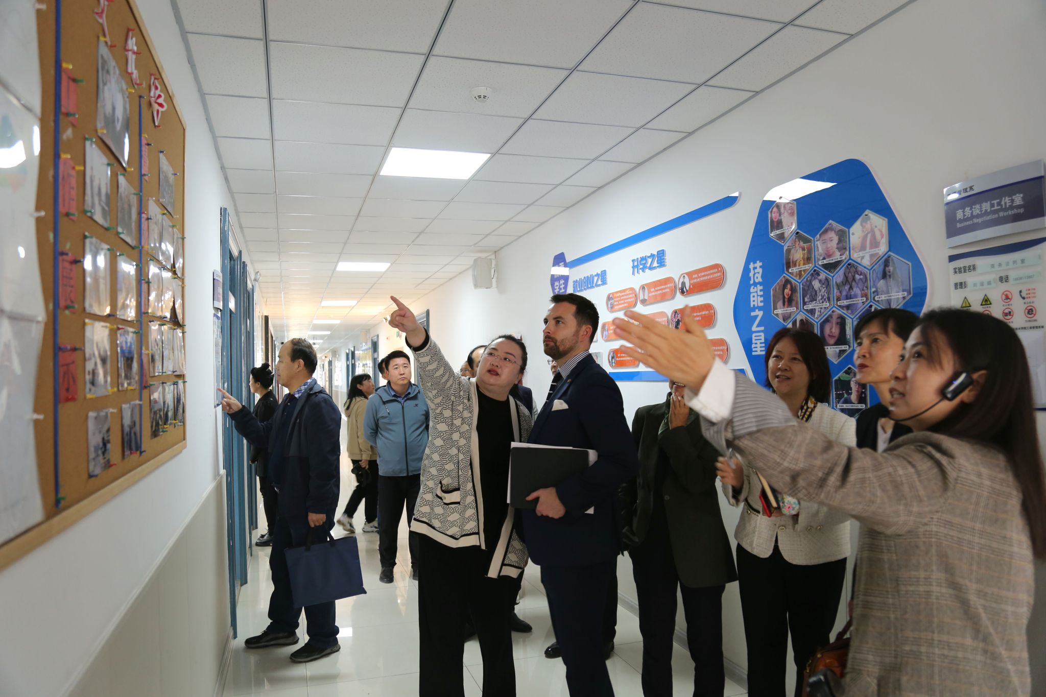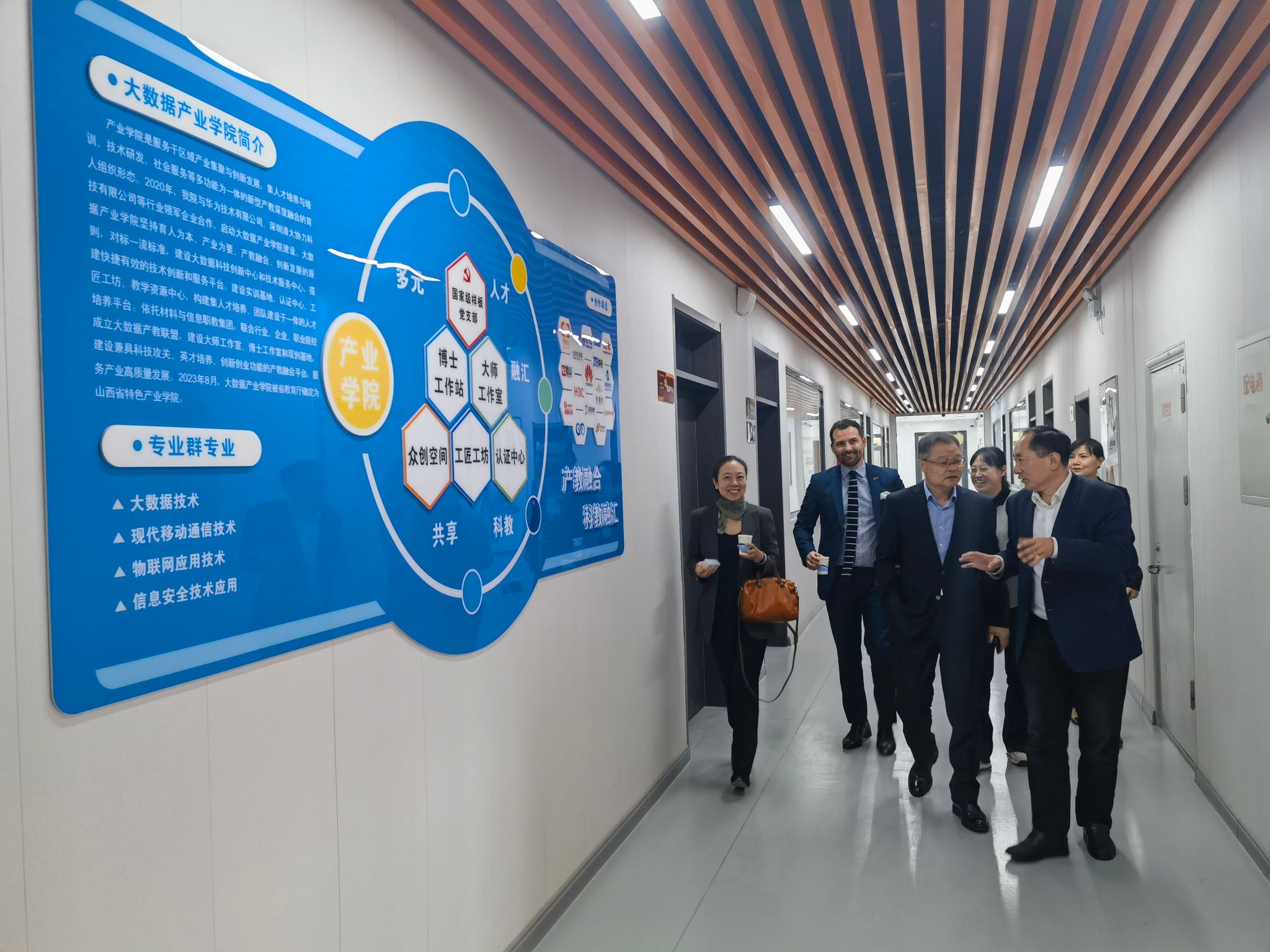座谈会结束后,蔚志坚副院长热情地陪同来访的嘉宾参观了长风校区的启航众创空间、大数据产业学院与华为共建的实训基地、认证基地、特色创新平台、电子商务综合实训基地和虚拟产业链实训基地,几位嘉宾在学院相关教师的引领和精彩解说下,深入了解了学院在贯彻落实职业教育法、优化职业教育类型定位、推进落实职普融通、产教融合、科教融汇等方面所做的努力和取得的成果。