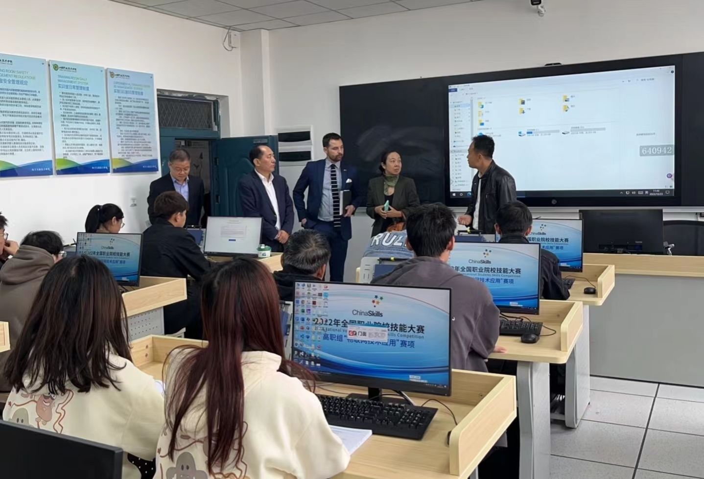 参观中,嘉宾们与正在上课的学生和老师进行了友好的交流。学生们的热情,老师们的严谨,给嘉宾们留下了深刻的印象。嘉宾们赞扬了学院在特色工坊建设和师生技能大赛中的成绩,高度评价学院的教育理念、教学设施和师资力量。他们希望今后加强交流与合作,共同推动职业教育的繁荣发展。