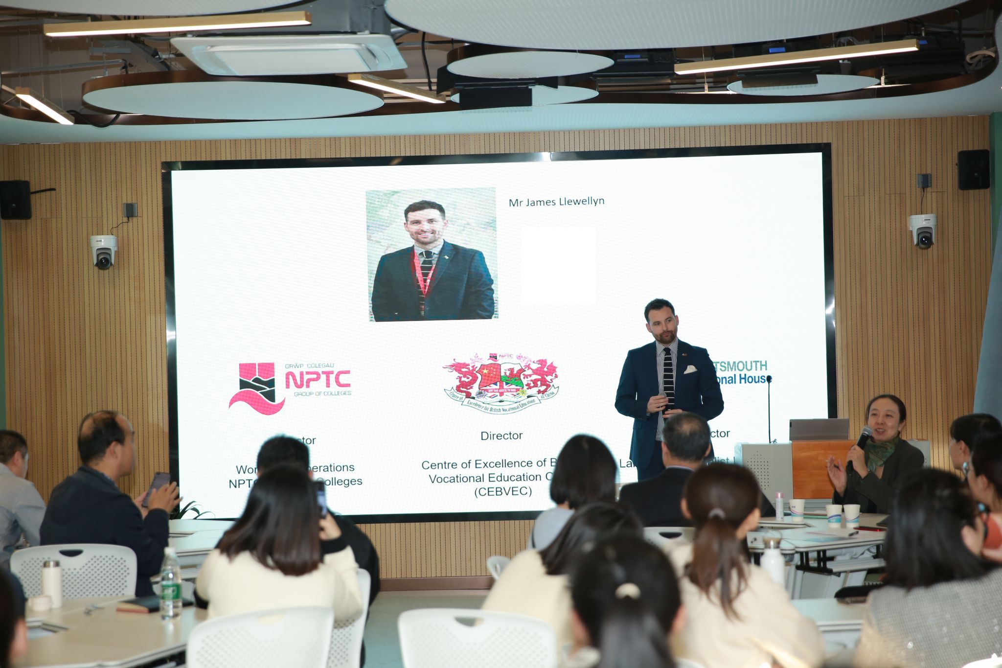 NPTC学院集团全球运营总监詹姆斯·卢埃林在讲话中分享了NPTC学院的经验和优势。英国NPTC学院集团是一所历史悠久、世界一流的公立职业教育集团,具有先进的教学理念和丰富的培训经验,在世界职业技能大赛上有着出色的成绩,在推动国际化和职业教育培训方面有着高质量的教育资源和丰富的经验。英国NPTC学院集团作为英国职业教育的代表拥有成熟的职业教育模式、专业建设模式和产教融合模式。他表示,愿意与开云官网在教师培训、学生培养、专业共建、技能大赛、海外访学、企业定制课程培训等方面展开深入的合作。