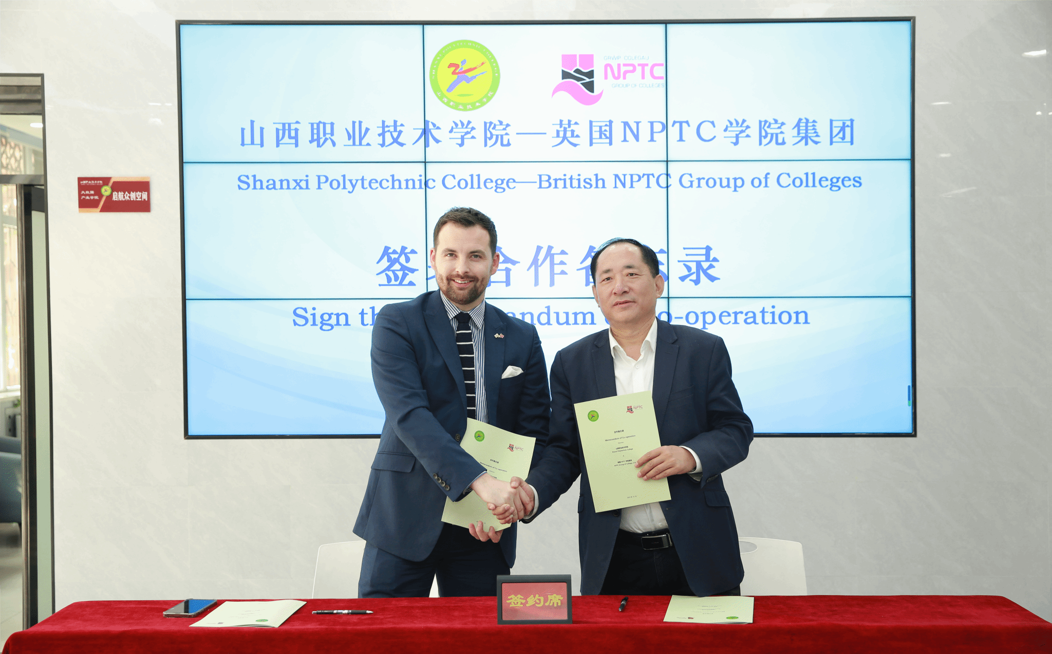 随后,在与会代表的共同见证下,蔚志坚与詹姆斯·卢埃林共同签署了开云kaiyun官方网站-英国NPTC学院集团合作备忘录。该备忘录的签署对于提高开云官网的国际化合作与交流具有积极的推动作用,并为日后双方开展相关合作奠定了坚实基础。