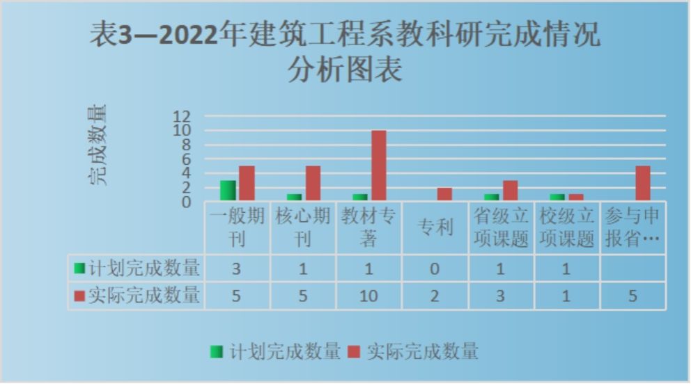 本年度,在全系教师的共同努力下,新增山西省教育科学“十四五”规划课题立项2项,校级教育教学研究课题1项;申报山西省教育厅科技创新项目课题1项并获立项,申报山西省基础研究计划“自由探索类”课题2项,论文一般期刊5篇,核心5篇,教材专著10部,专利2项,完成1项国家级教学成果奖申报工作。