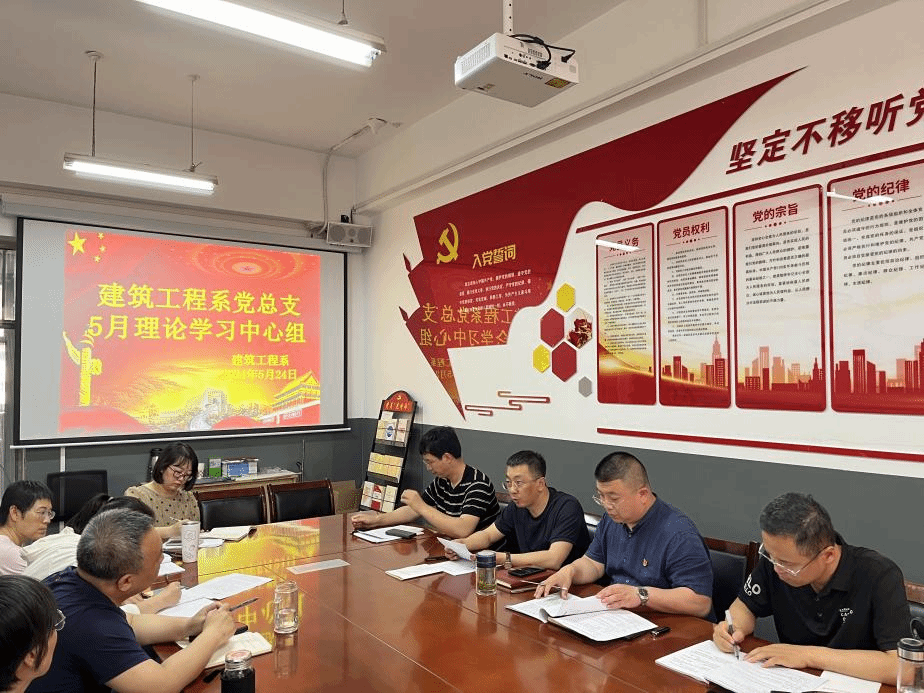 根据党纪学习教育工作安排和2024年度党总支理论学习中心组学习计划,5月24日,建筑工程系党总支召开五月理论学习中心组(扩大)学习会议,系党总支委员、支部书记及支委、团总支书记、党政办主任、教科办主任、各专业主任参加了学习会议,会议由党总支书记秦文平同志主持。
