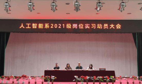 为有序组织好人工智能系2023年学生岗位实习工作,调动学生参加岗位实习的积极性,使学生顺利完成实习任务,人工智能系于2023年9月10日召开了2023年学生岗位实习动员大会,人工智能系主任陈炯、党总支副书记米昂、副主任刘琴、王赟、专业主任、辅导员以及全体岗位实习学生参加了此次大会,会议由系主任陈炯老师主持。