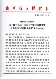 近日,山西省人民政府印发《关于授予2022—2023年度职业技能竞赛优秀选手“三晋技术能手”称号的决定》(晋政函〔2024〕101号),对517名在省级以上职业技能竞赛中取得优异成绩的选手授予“三晋技术能手”称号。我系教师徐宏斌在第四届山西省职业技能大赛人工智能工程技术赛项中取得一等奖,荣获“三晋技术能手”称号。
