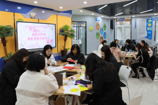 此次艺术疗愈活动内容丰富多样,充满创意。在绘画环节,女教职工们用五彩斑斓的画笔勾勒出心中守护力量的形象,有的描绘出温柔坚定的女性形象,有的绘出象征勇气的动物,还有的以抽象的线条表达内心的力量源泉,每一幅画作都饱含着她们对守护与自我成长的独特理解。大家还发挥巧思,用黏土、彩纸、金粉等材料制作出精美的饰品和手工艺品。在创作过程中,女教职工们相互交流、分享创意,欢声笑语回荡在活动现场,不仅缓解了日常工作的疲惫,还增强了彼此之间的情谊。