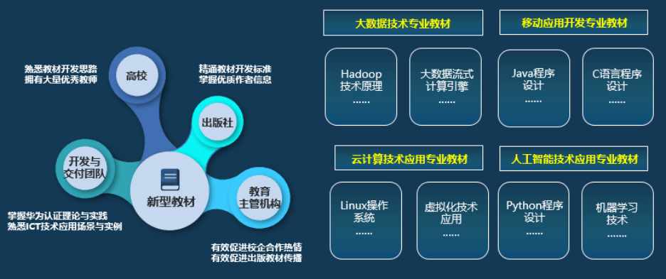 汇聚优质资源,与华为、电子工业出版社、智慧树平台等企业合作,联合开发新型立体化教材,“活页+手册+菜单”形式的新型校本教材全覆盖。