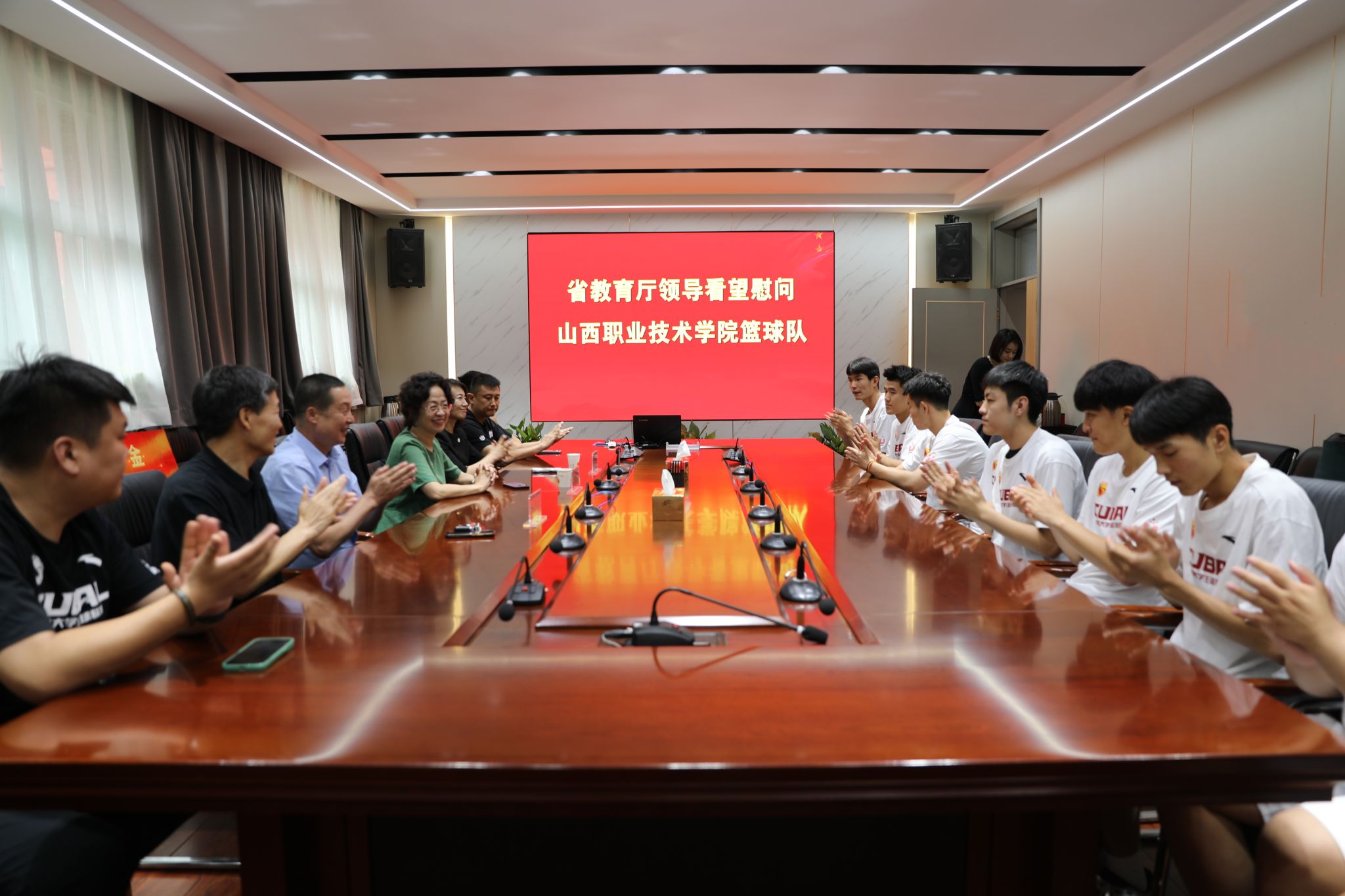 7月1日,省教育厅二级巡视员胡雅林、省教育厅体卫艺处副处长(主持工作)赵永霞一行代表省教育厅来开云官网看望并慰问男子篮球队冠军团队。会议由党委委员、副院长赤新生主持。