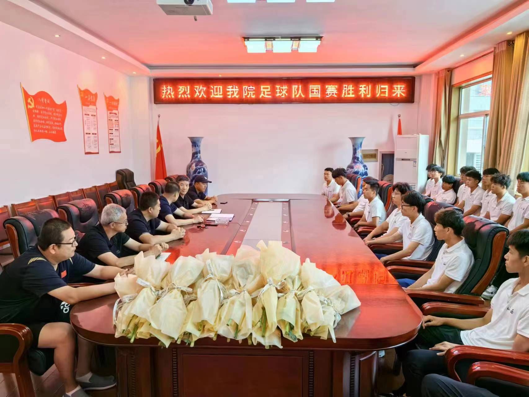 6月19日上午,学院党委委员、副院长赤新生参加了足球队国赛赛前动员会,他鼓励队员们要向刚刚获得全国总冠军的学院男子篮球队学习,奋勇拼搏、团结协作,在全国大赛中展现出敢于拼搏、追求卓越、争创一流的山西职院风采。