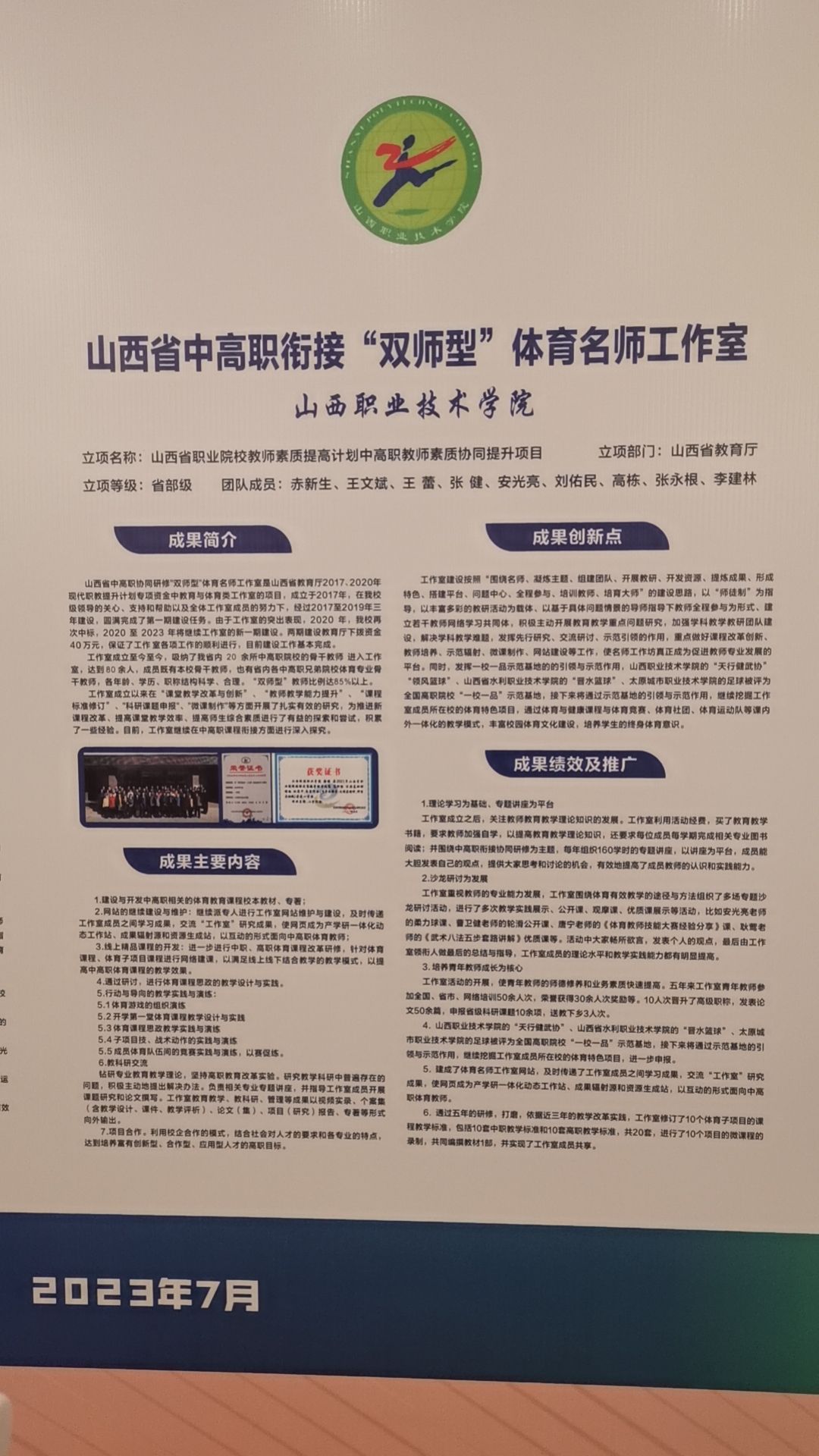 本次培训时间紧凑、内容丰富。期间,集中展示一批自党的十八大以来全国高等职业院校体育工作的若干标志性典型成果,开云官网“山西省中高职衔接‘双师型’体育名师工作室” 成功展出。
