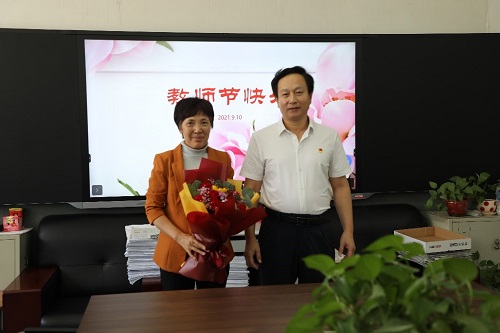2021年9月10日上午,在第37个教师节到来之际,学院党委书记雷承锋与党政办、教务处、院工会一行人赴思政部办公室慰问思政部全体教师,向教师代表王娟霞老师及思政部全体教师表示节日的祝贺以及诚挚的问候。