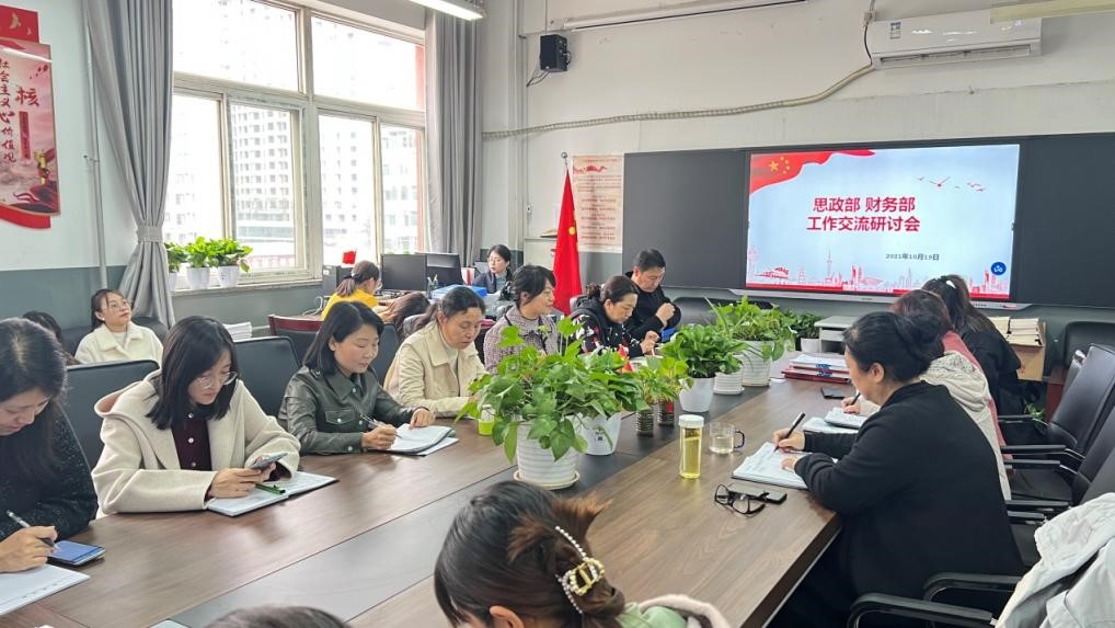 2021年10月19日,思政部与财务部开展工作交流研讨会。财务部部长王粉波带领财务部的老师们来到思政部,就如何更有效开展财务工作进行调研与宣讲。会议由思政部主任蒋晋红老师主持,思政部全体教师参加了此次会议。