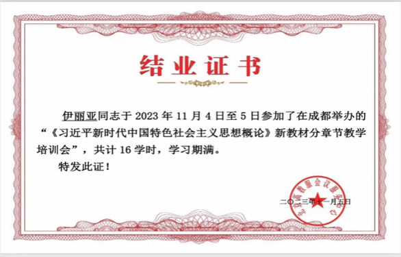 伊利亚老师于11月3日-6日赴成都参加“《习近平新时代中国特色社会主义思想概论》分章节教学培训会”。在培训会中,各位专家围绕第六章:推动高质量发展,第七章:社会主义现代化建设的教育、科技、人才战略,第八章:发展全过程人民主,对习近平新时代中国特色社会主义思想进行深入解读,并从整体系统、纵向比较、横向交叉、跟踪贯通以及进阶提升五个维度学习把握,分析课程特点、教学建议及教学重难点。