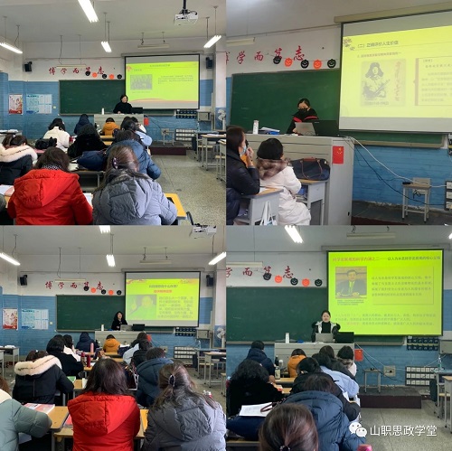 为加强思政课教师队伍内涵建设,促进思政课教师教学能力的提升,2021年1月5日下午3点在坞城校区403教室开展了本学期第四次公开课教学活动。龚雅丽、张旻、任贤英、贺丹薇四位老师分别进行了教学展示,思政部全体专兼职教师积极参与,认真聆听,在相互学习中共同成长。