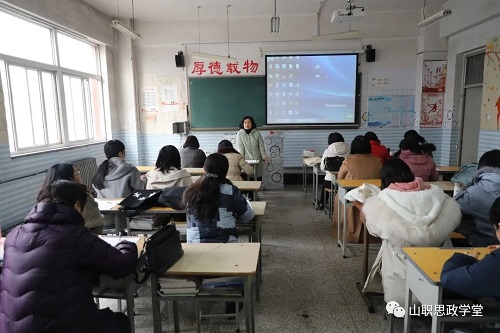 为切实增强学生对思政课的获得感和认同感,进一步推进我校思政课建设,在思政部主任蒋晋红老师的重视和指导下,思想政治理论教学研究部于2020年11月24日下午在坞城校区407教室开展了本学期第三次公开课教学活动。张瑞荣、吴小燕两位老师分别以《改革是社会主义社会发展的动力》、《新时代 新阶段 新征程》为主题进行了教学展示,各位教师认真聆听,在学习交流中相互启发,共同成长。