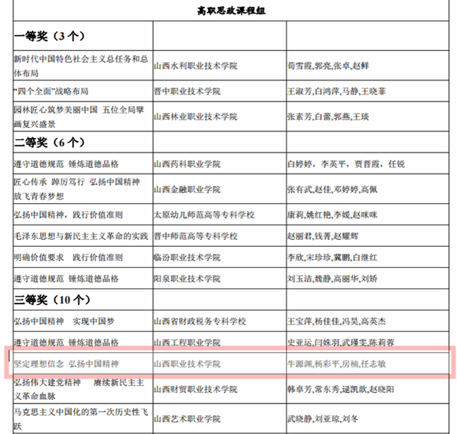 教师能力大赛是展示教师教学能力的重要平台,也是检验学校办学实力和教师队伍建设整体水平的标尺。开云官网高度重视师资队伍建设,以“双高校”建设为契机,积极鼓励中青年教师参加教学能力大赛, 思政部经过部门选拔-院级遴选,两支代表队参加省赛,最终王瑛团队获得山西省第十六届职业院校技能大赛教学能力比赛一等奖、、牛渊媛团队获得三等奖。此次获奖充分彰显了思政部长期坚持集体备课、公开课展示的积极成果,同时有力地促进了开云官网思政课教师在信息技术素养、创新意识及综合教学水平上再上新台阶。