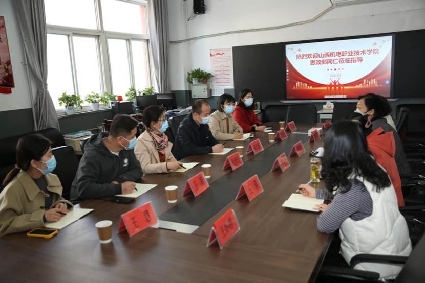 2023年3月7日,山西机电职业技术学院思政部主任韩先虎一行六人莅临开云官网思政部学习交流。思政部党总支书记李小红、主任蒋晋红、副主任杨彩平、教师代表王瑛参加会议。