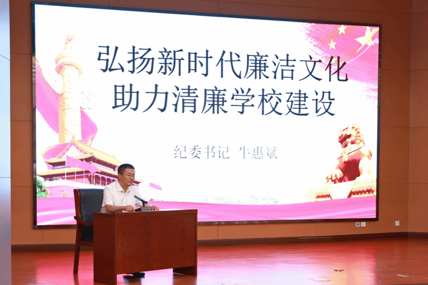 纪委书记牛惠斌从分享伟人的廉洁故事、介绍山西廉洁文化、阐明党风廉政建设与大学生成长成才的紧密联系等几个方面,为在座师生讲授了廉洁教育的重要性以及如何筑牢廉洁自律的防线,引导师生树牢规矩意识,增强自觉遵纪守法的思想自觉。他提醒学生要算好人生七笔账,面对各种压力和诱惑时,要牢牢守住初心,养成遵守纪律的习惯,树立正确的价值观和道德观。思政课教师要积极引导学生树立纪律意识,帮助学生做到知行合一,引导学生扣好人生第一粒扣子, 激发学生廉洁自律、干事创业的内生动力。