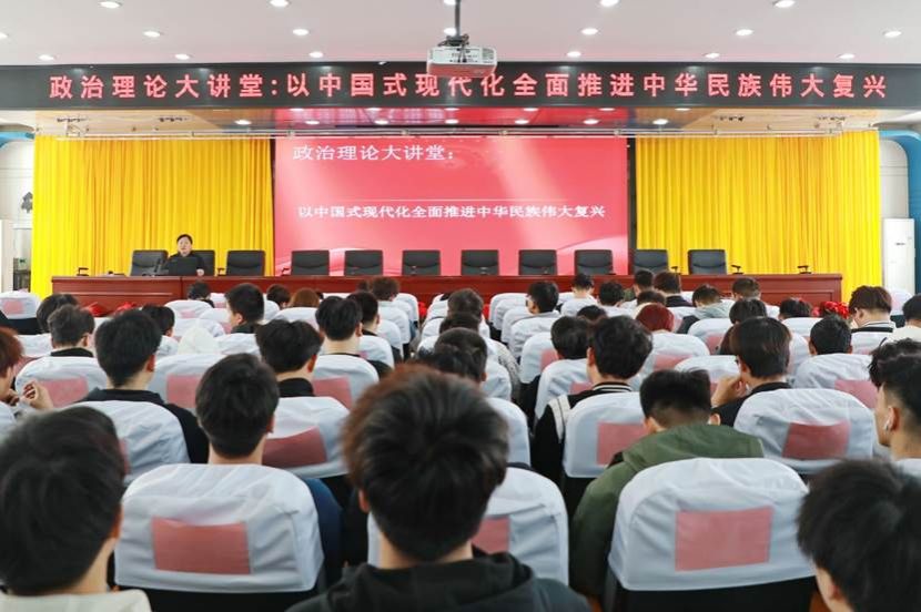 为进一步推进习近平新时代中国特色社会主义思想“三进”工作,更好地巩固主题教育学习成果,在全院营造用习近平新时代中国特色社会主义思想武装头脑的浓厚氛围,思想政治理论教学研究部3月26日在坞城校区7楼报告厅举办“政治理论大讲堂”活动,思想政治理论教学研究部党总支书记蒋晋红做了《以中国式现代化全面推进中华民族伟大复兴》的主题报告。全体思政课教师及学生代表现场聆听了讲座。