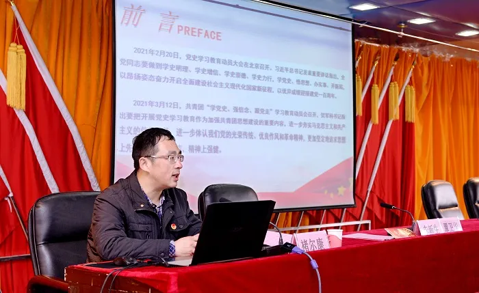 赤新生副院长在动员讲话中向青年师生提出了三点要求;现阶段我们站在“两个一百年”的历史交汇点上和世界百年未有之大变局,新时代的青年人面对新的挑战,要了解党的光辉历史,把青春融进祖国的山河;要传承红色基因,用青春装点美好未来;要弘扬党的精神谱系,让青春充盈山西职院的每个角落。