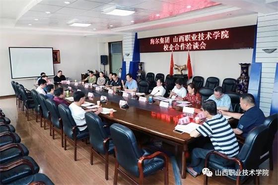 洽谈会上,雷承锋院长介绍了学院基本办学情况和“十三五”时期“一个目标,两手硬”的发展思路,并重点介绍了开云官网新校区建设情况。新校区建成后不仅要在凝练方向、汇聚队伍、打造平台、形成特色上狠下功夫,还将着力实现6个延伸拓展:一是办学规模的延伸拓展,二是社会影响力的延伸拓展,三是“校校资源”优势互补的延伸拓展,四是向综改示范区产教深度融合的延伸拓展,五是职教校园文化与企业文化的延伸拓展,六是脱贫攻坚社会服务能力的延伸拓展。雷院长表示,海尔集团与山西职院的优势基础以及相同的教育理念都将为合作提供扎实的根基,也期待未来双方在人才培养、技术创新、社会服务、文化传承等方面开展全方位的合作,真正形成校企发展的命运共同体。