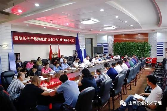 会上,五条工作主线办公室主任、机械工程学院班子成员及各部门、各系部负责人结合“五条工作主线”在本单位具体开展的情况、面临的困难和对学院工作的建议等方面进行了热烈的讨论,雷院长认真记录并详细解惑。