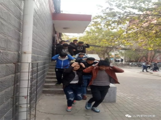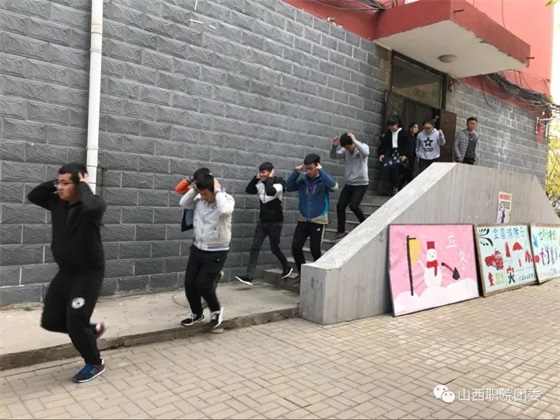 随着哨声响起,演练正式开始。各楼层负责人按照演练方案指挥学生开始撤离,每位学生都按要求弯腰,用纸巾或手捂住鼻子,跟着队伍迅速撤离指定位置。整个过程学生都能做到行动快速,配合默契,此次的演练用时2分钟,获得圆满成功。