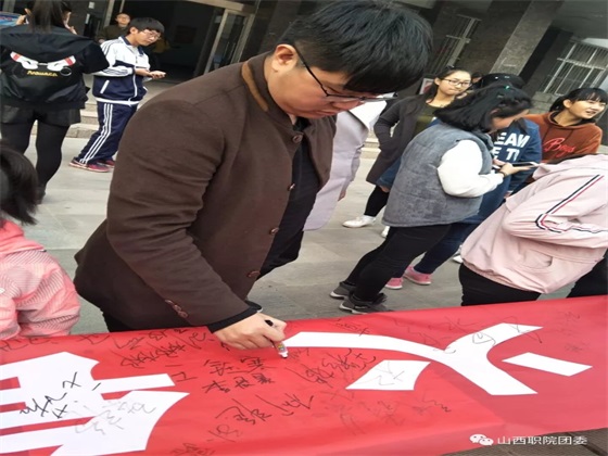 此次活动,同学们在各班班长的带领下,齐聚小广场进行安全消防条幅签字活动,动组织到位、措施得力,让同学们的积极参与进来。大家的热情非常高涨,陆续在印有“师生有情火无情,校园防火钟长鸣”的横幅上郑重地签下了自己的名字。同时会计系党委书记贾永兴老师,会计系辅导员乔雪刚老师丶任耀威老师、杨华老师出席了本次活动,最后,学校把横幅悬挂在楼道醒目的地方,时刻提醒广大师生“师生有情火无情,校园防火钟长鸣”消防安全。