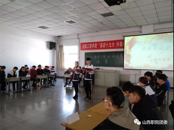 为充分调动学生学习贯彻党的十九大精神,深刻领会习近平新时代中国特色社会主义思想的丰富内涵,机械工程学院于12月18日中午1点在教学楼六楼教室举办了“十九大主题精神”知识竞赛决赛。