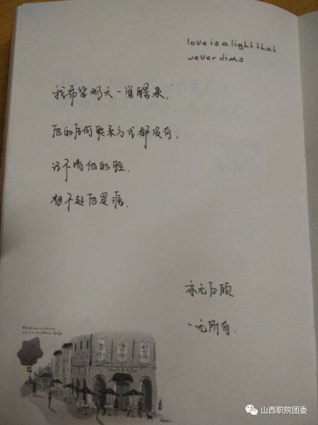 剪不断的情,理不清的愁,对未来的畅想,感叹花开花落,细看云卷云舒……所有这些心灵的感触都可以提笔记录在“漂流本”上,提笔写作,人、纸、笔,自然和谐的融为一体,还可以留下一份珍贵的手稿。有些情感输入到word里却不如写在纸上有韵味,一抹书香,一份真情,代替在表白墙上的表白,我们可以选择用书香打开TA的心扉,可以让吐槽在这里激起火花。