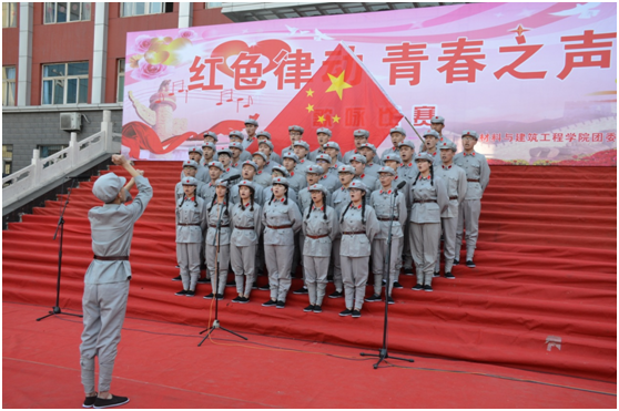 为弘扬民族精神,践行社会主义核心价值,进一步培养当代大学生的爱国情操。2016年4月18日下午4点50,材料与建筑工程学院团委在主楼前开展以“红色律动,青春之声”为主题的歌咏比赛。学院学生处处长蔚志坚,团委书记李星莅临了本次比赛。