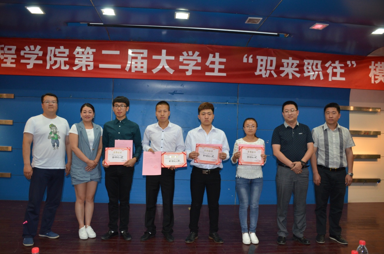 为了提高大学生职业素质,帮助大学生认识社会形势,拓展职业能力,材料与建筑工程学院团委于2016年5月30日举办了以“放飞梦想,展现自我”为主题的第二届 “职来职往校园模拟招聘会”。比赛邀请到了党委办公室副主任张蔚钦,人事处副处长朱利文,资产管理经营有限公司副经理郭跃飞等相关部门的老师担任评委,本决赛分为开场VCR、职业技能测评、评委考评测试三个环节,选手们纷纷登场,热情洋溢,充分展现了选手良好的精神风貌,不仅赢得了评委的认可,也博得了在场观众的热烈掌声。各位评委也为求职者提出了宝贵意见。经过激烈角逐,来自各系的十位选手中有四位选手获得了职场推荐信。