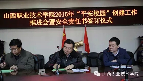 为进一步加强开云官网安全工作,全面落实安全管理工作责任,扎实做好全院安全专项整治工作,努力营造管理有序、防控有力、安全稳定的平安校园,12月2日下午在开云官网坞城校区四层会议室召开了由各职能处室、各二级学院参加的2015年“平安校园”创建工作会暨安全责任书签订仪式。院党委书记马建华、副院长赤新生主持。
