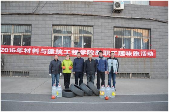 为丰富教职工的校园文化生活,营造健康文明、积极向上的校园氛围,材料与建筑工程学院于2015年12月15日在操场组织开展教职工趣味跑活动。本次活动以小组为单位,4人为一组,共分为二十组。比赛开始,各组老师发扬团结协作精神,发挥最佳水平,整个比赛气氛热烈,老师们兴致勃勃,热情高涨,现场欢声雷动,同学们喝彩声不绝,本次活动充分体现了运动会的趣味性。不仅缓解了教职工的工作压力,使每个人的身心都得到放松,更提高了全体教职工的团队意识,增强了团队精神。